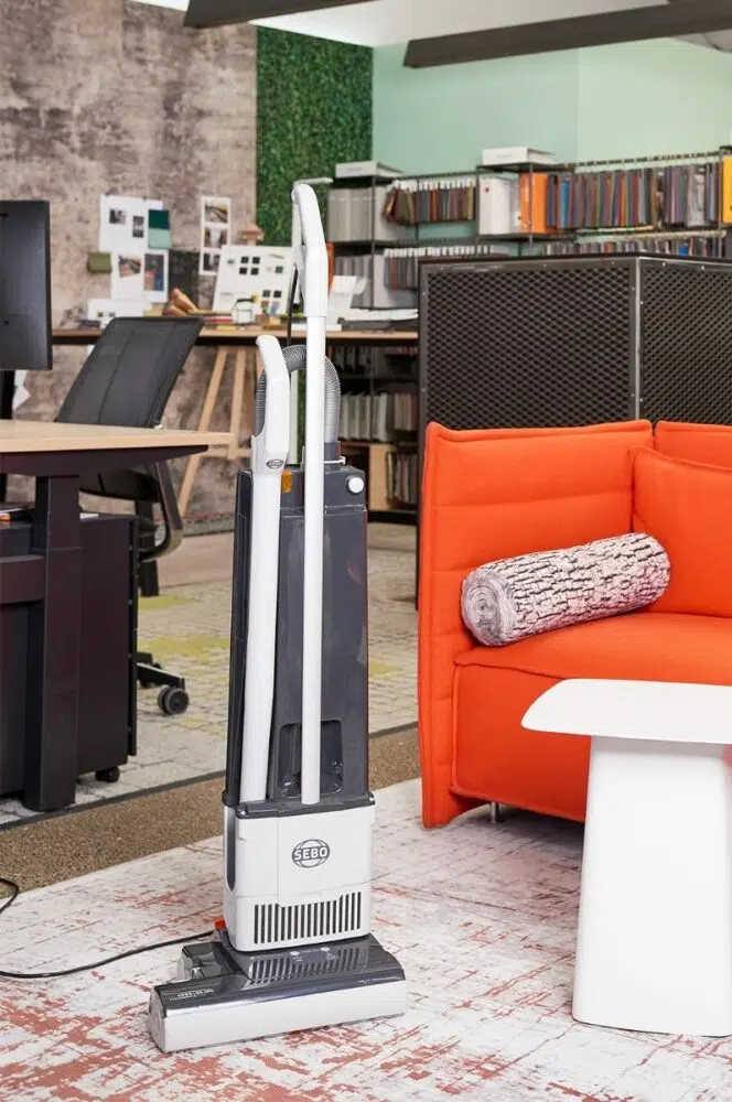 The Sebo BS360 is an upright vacuum offering performance, efficiency and economy. Designed to be used for extended periods of time, the BS360 is easy to operate and replacement brush strips and handy unblocking points make it a breeze to maintain.