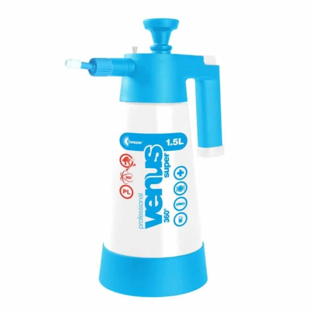 The Venus Super 360+ Pro Cleaning Spayer also comes with an adjustable spray nozzle to easily adjust from fine to coarse spray, graduated, durable tanks with a visible fluid strip to indicate fluid level, and a built-in safety valve which is operational in excess of three bards of pressure to prevent over pressurising. Finally, this sprayer also has a base rim for stability and protection against damage as well as Viton seals.