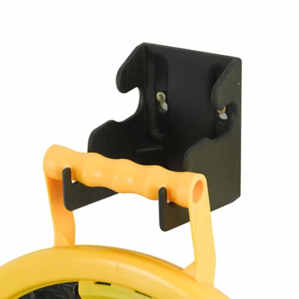 Fixes to a wall or post and enables the Bag Hoop to be easily stored and used.